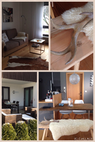 2 Zimmer Ferienwohnung im modernen Design. Diese Wohnung lädt ein zum Entspannen und Wohlfühlen! Erst 2013 mit Liebe zum Detail und Design renoviert. Am Ortsrand gelegen, im Park des 4 Sterne Hotels A...